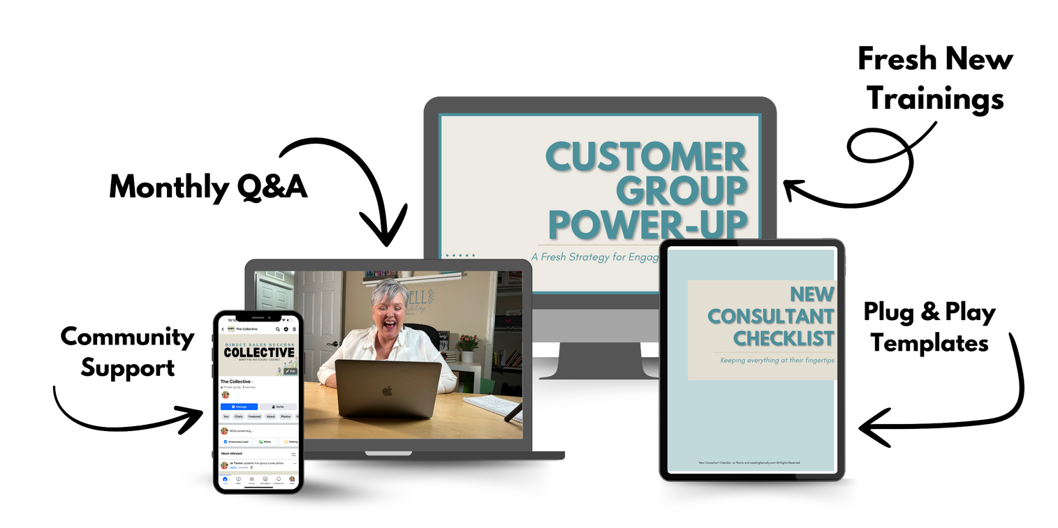 Each month, I'll share a specialized topic to help you grow your direct sales business.Each training will be housed on The Collective membership site ready for you to access when you most need it. You'll have an entire library full of resources just for you.Think actionable strategies, not more fluff.